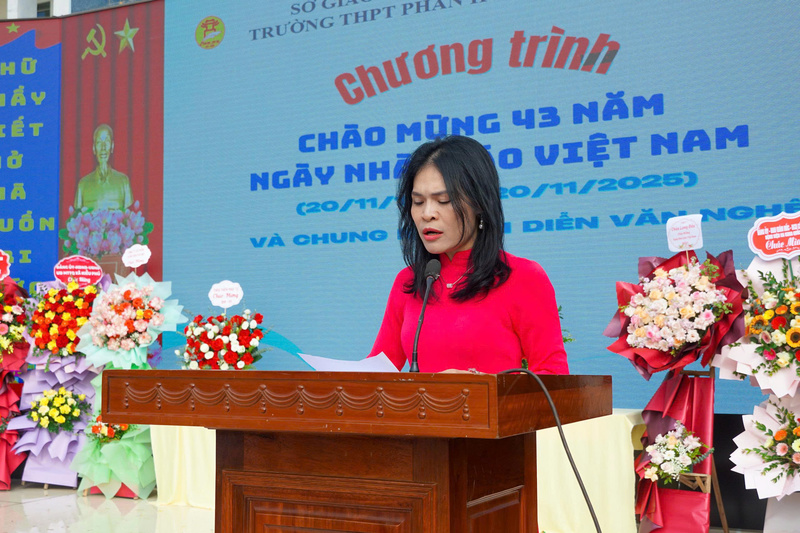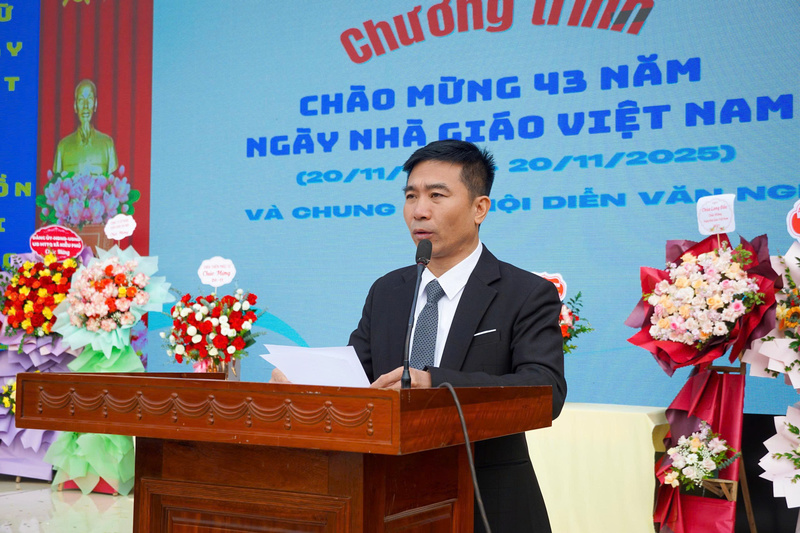 Thầy Nguyễn Thanh Tuấn - Bí thư chi bộ, hiệu trưởng đọc diễn văn chào mừng 43 năm Ngày Nhà giáo Việt Nam 20.11