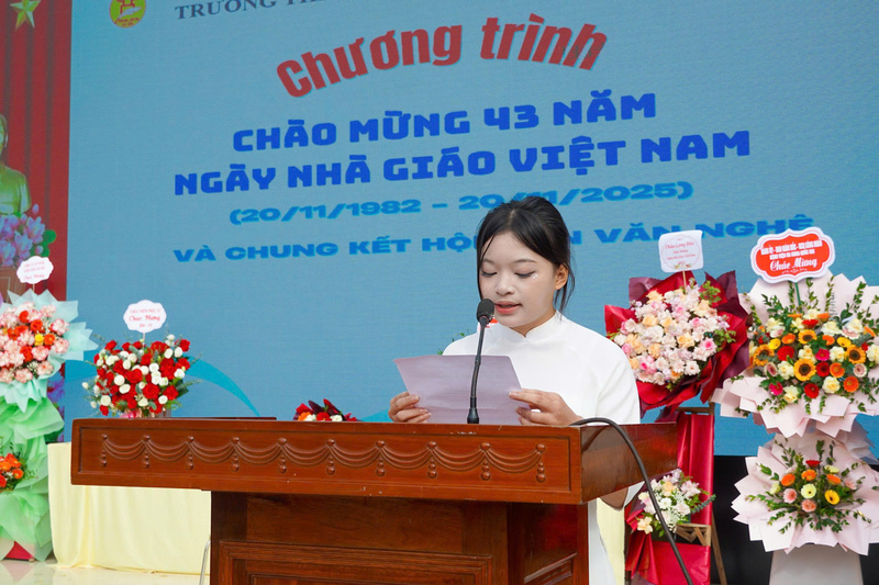 Trong không khí ấm áp của buổi lễ, nhà trường đã đón nhận những lẵng hoa tươi thắm chúc mừng từ các quý vị đại biểu, khách quý và Ban đại diện cha mẹ học sinh. Đại diện cha mẹ học sinh và đại diện học sinh toàn trường cũng đã có những bài phát biểu xúc động, bày tỏ tấm lòng kính mến và tri ân sâu sắc gửi tới các thầy cô giáo.