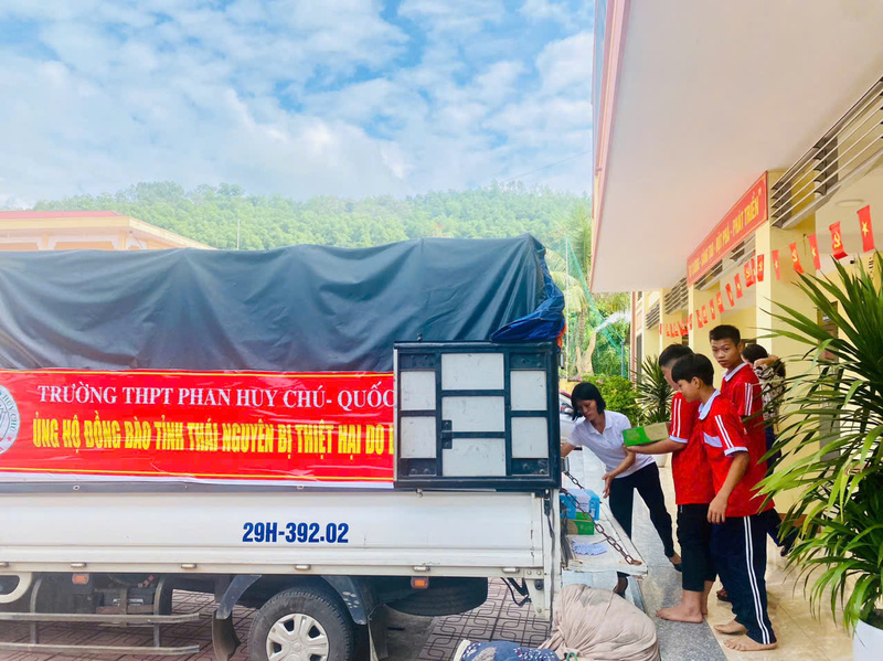 Chuyến xe nghĩa tình mang tên trường THPT Phan Huy Chú - Quốc Oai trao yêu thương đến với đồng bào bị ảnh hưởng bởi thiên tai tại Thái Nguyên