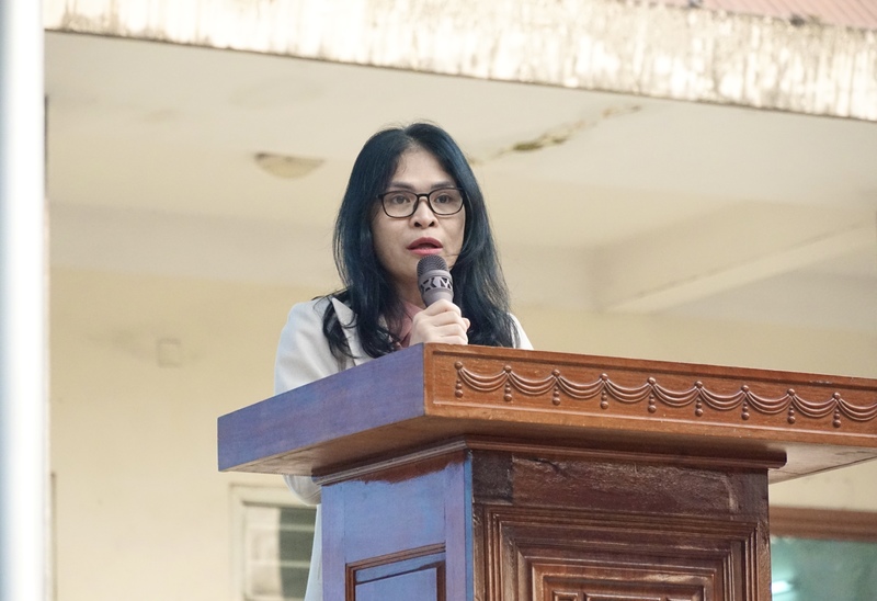 Cô giáo Nguyễn Thị Dung-Phó bí thư chi bộ, phó hiệu trưởng báo cáo sơ kết học kì I
